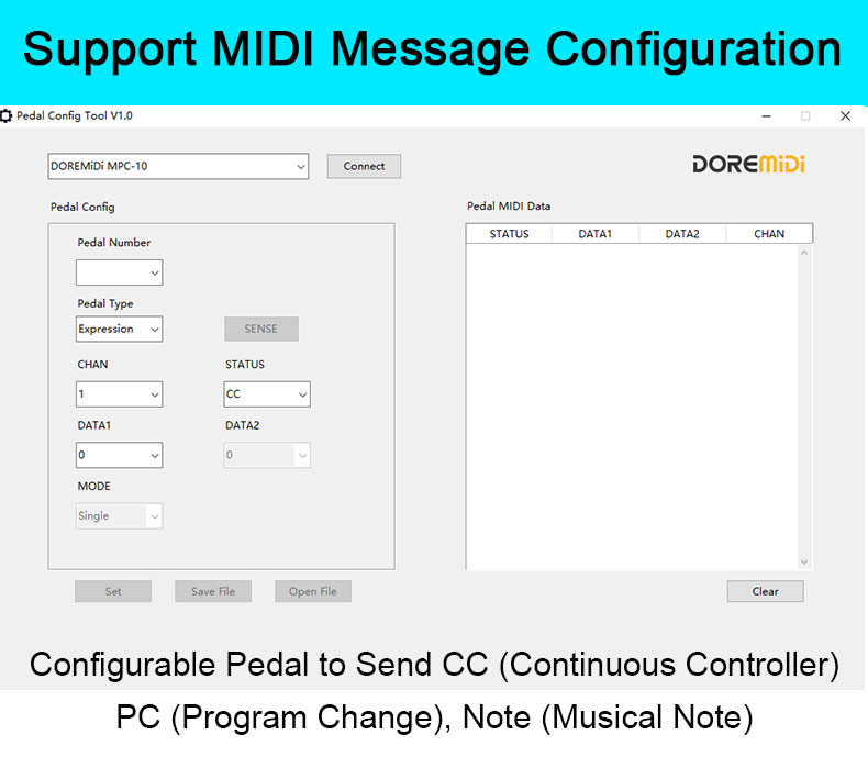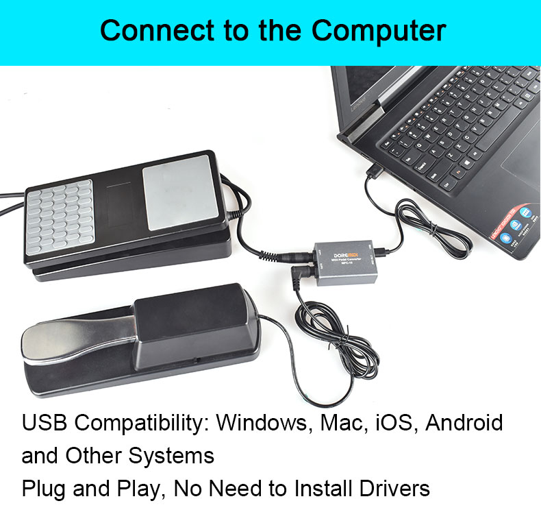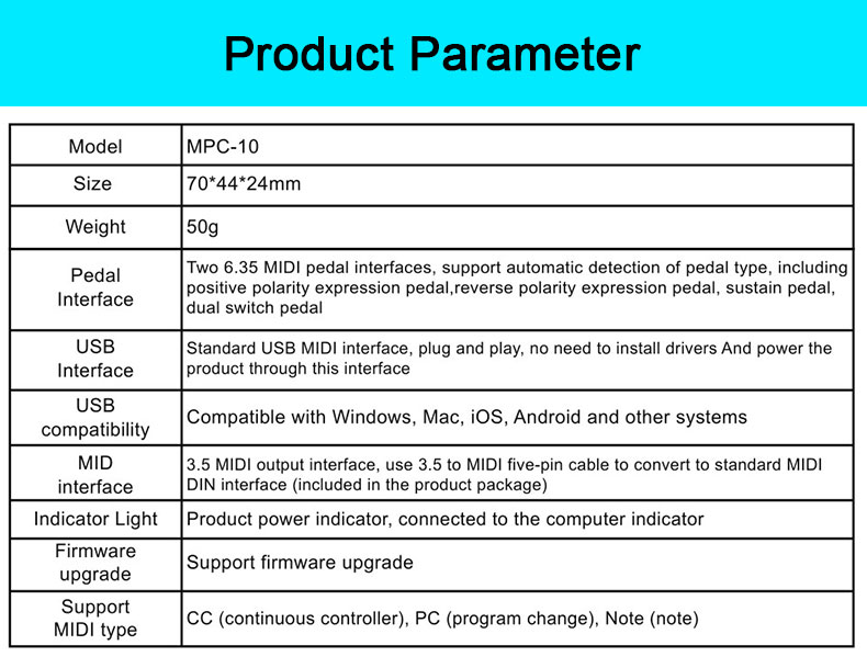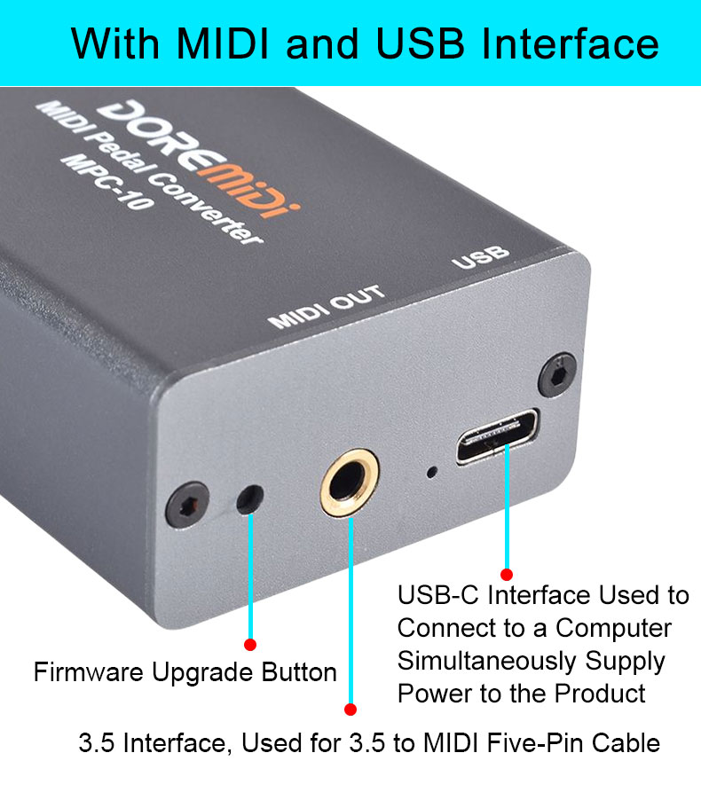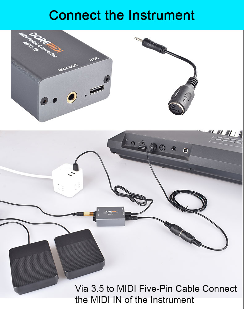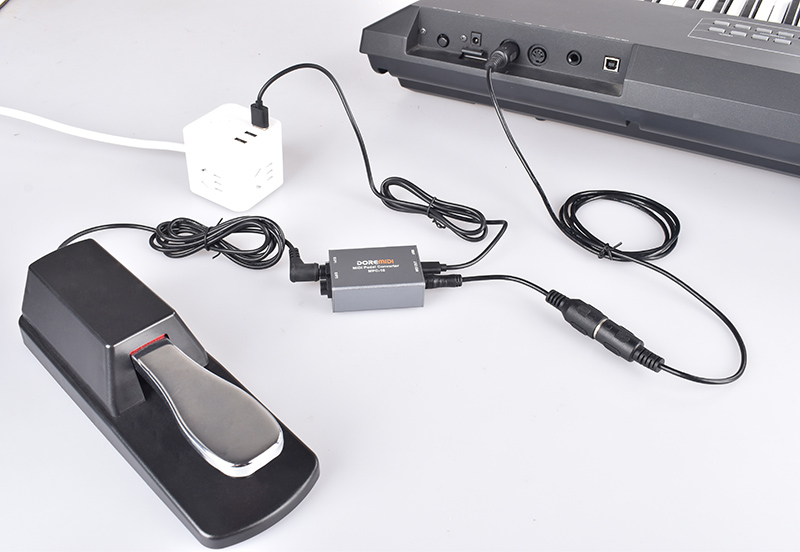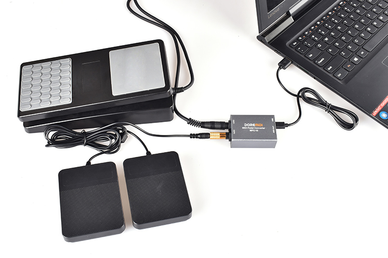 MIDI Pedal Converter (MPC-10) is a converter designed by DOREMiDi that can automatically detect multiple types of instrument pedals to solve the problem of insufficient number of pedals during performance. This product is compatible with positive polarity expression pedal, reverse polarity expression pedal,sustain pedal, and dual-switch pedal. It has MIDI DIN and USB MIDI outputs, and is suitable for use in a variety of performance scenarios.
