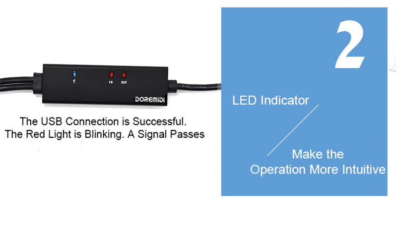 LED indicate power on,MIDI in signal and MIDI out signal.